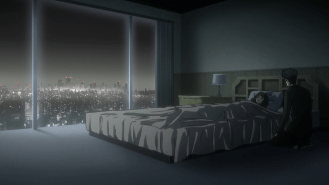 The focus shifted on a numb and hollow Maho, simply trying to piece reality back together. Finding the whole ordeal unsustainable now that the adrenaline was gone. A somewhat clumsy but still cute fanservicy bathroom scene served to loosen the audience and lighten the mood. Everything slowed to a crawl. By the way, do any of you guys do that as well: find that your hands get frozen in a certain position due to stress? It’s only happened once or twice in my life, but I remember a particularly traumatic time where I had to sign a bunch of documents and I found I couldn’t seem to let go of the pen. I had to use my other hand to pry my fingers open. It doesn’t hurt and only lasts about a minute but it’s an eerie little detail that spoke volumes to me as Maho struggled and failed to open her hand in order to show Okabe the small computer shard she had retrieved.