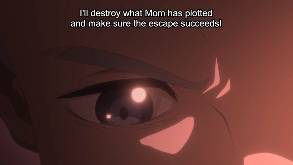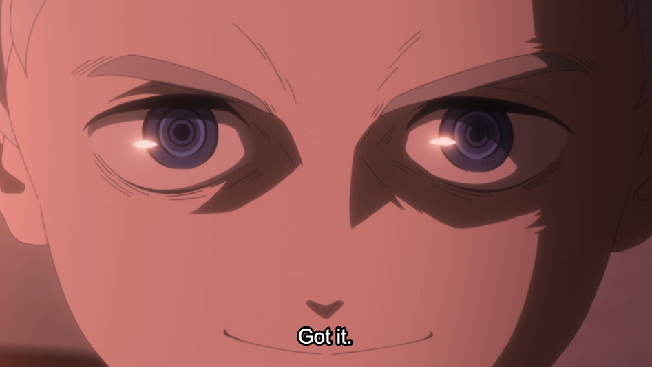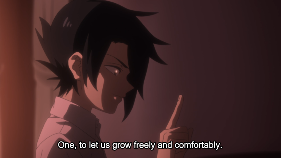 Ray isn’t the cool and composed mastermind he makes himself out to be. This boy who since the age of five has patiently collected trinkets to create a disarming device all on his own without anyone noticing. This boy was a bleeding heart hero type. He may not be able to save everyone, but he needs to save his friends at least. How cute and innocent. How naive to think you can just throw them out there. This is why he had to accept Norman’s argument that should he escape neither Emma or Ray would be taken in his stead and sacrificing another for your own life is unbearable. Because he’s just a kid who loves his friends, that’s all. Ray is truly and undeniably impressive.