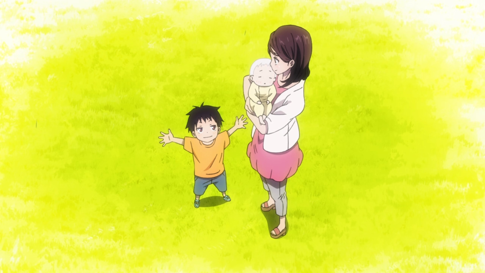 Technical aspects: I actually really like this one so far. It’s probably my favourite style of the three I saw. It has a modern anime look with slightly more reasonable proportions and a variety of silhouettes. In a way, it may be the most realistic looking which is hilarious. The colours are similarly rich but grounded. On the other hand, animation is impressive and fluid. On top of that, the director used a few interesting visual tricks, successive jump-cut transitions in the firehouse, use of different art styles for certain scenes, flashback specific colour palettes… It’s a stylish looking show and I am enthusiastic to see more of it.