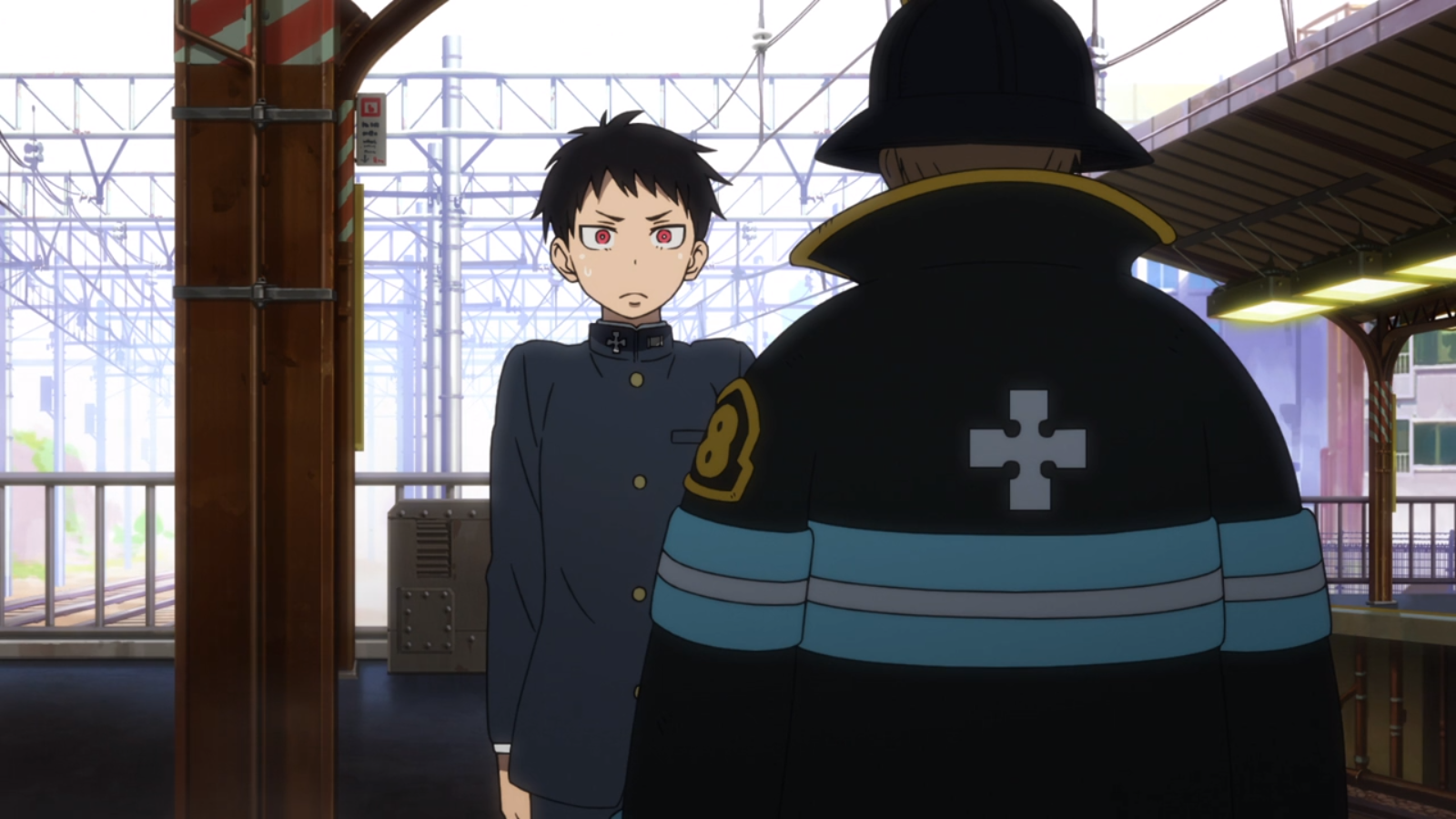What the first episode was about: A young man named Shira finally accomplishes his dream to become a fireman (superpowered individuals who fight infernals). Some years ago, people started suffering from spontaneous combustion and becoming infernals, something like fire demons. Those who survived gained pyrokinetic powers which get stronger as they are passed along down generations. As a 3rd gen pyrokinetic, Shinra is particularly powerful but has also been seen as a monster and blamed for tragedies. He now wants to prove he’s a hero instead.