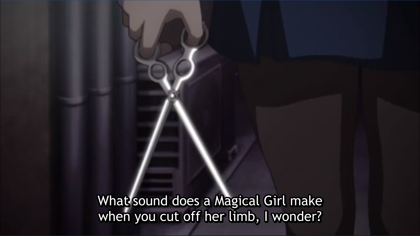 Kurumi is broken. She was carrying a heavy burden even before she became a Magical Girl, but after going through that war, it’s amazing she’s even coherent. But she’s keeping it together mostly because of Asuka. Kurumi’s attitude toward torture — towards doing anything that would either protect or help Asuka — makes perfect sense to me in that context.