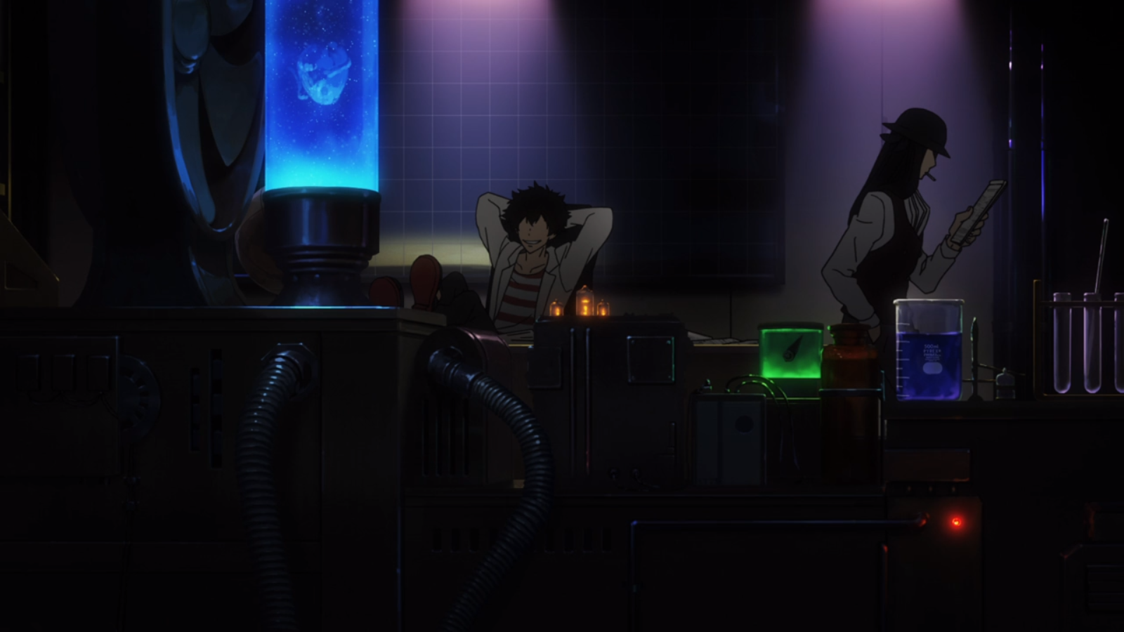 This week was quite different. Starting out in shadows it gave us brief glimpses of a blue skied summer day but kept us mostly in stuffy dark rooms ending up on what could almost pass for a cool night. I know the colours were edited after the Kyoto Animation tragedy so that may actually explain the shift but I’ve decided it works and that it was deliberate.