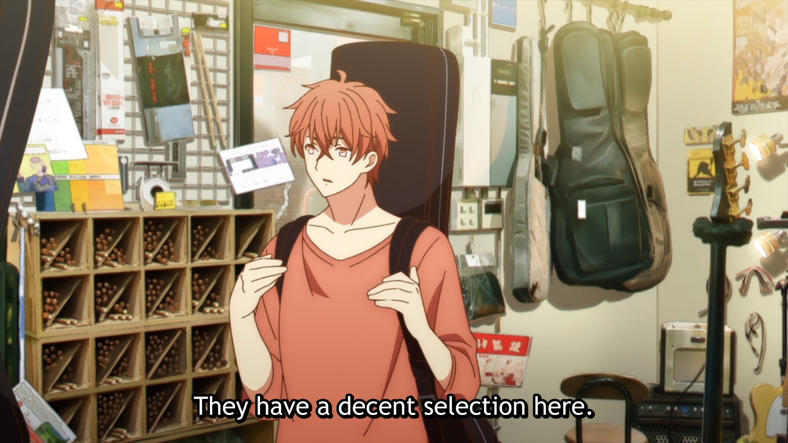 Given is not a visually adventurous show and I have seen some blogs call it cheap looking. But there is a lot of little touches in the images that make it come to life. The colour story is one of the best I’ve seen in a while. Beyond that, the realism of the music shops really bright back some memories and the restaurant looks like somewhere I would love to go at the end of a long night.