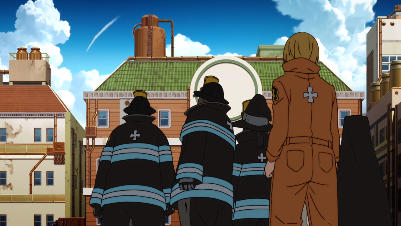 I said in my Granbelm Gallery that this week the images had no natural break to them. It’s the opposite for this week’s Fire Force. I could almost see exactly where chapter ends were. The visual flow is impressive. In fact, I looked over my pinterest board for the series. I’m trying to to put too much fanart in there yet. The colour story from one episode to the next is amazing. You can see how the story is progressing just from that! So far, this episode boasts one of the most colourful palettes of the season and considering what’s to come, it makes sense.