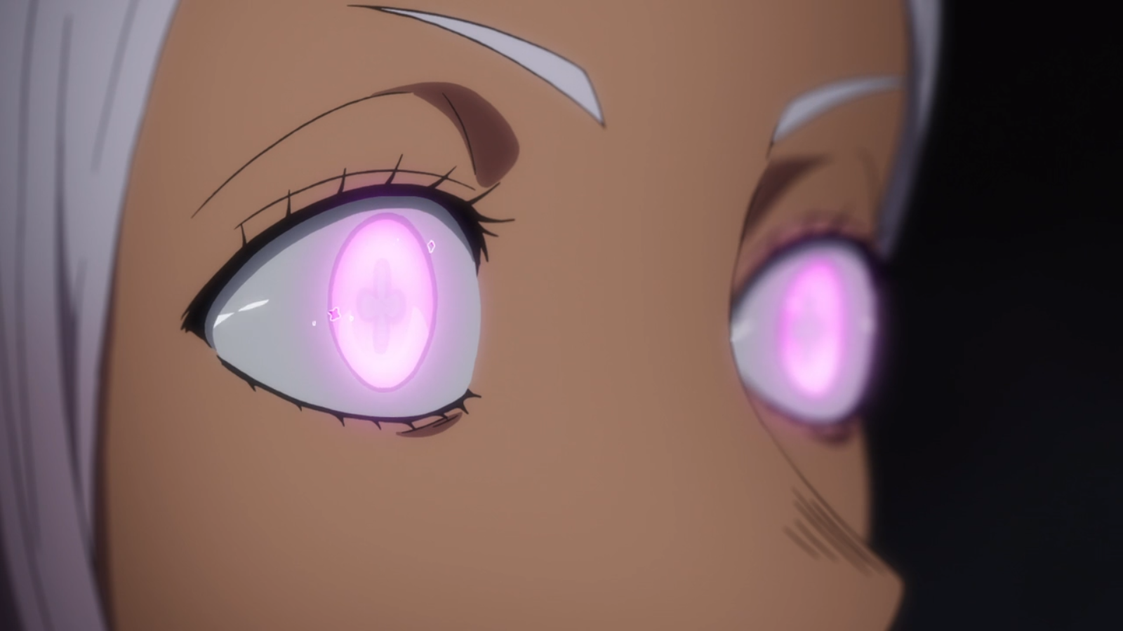 Two things caught my eye just in the opening Tag. First we have another fanservice character in Hibana but this one is a little different as he sensuality is presented as intentional. Pink haired ladies have quite a storied history in anime and to see one as a self assured and openly confrontational antagonist is a nice twist. in any case I got completely hypnotized by those flower petal pupils. I also have been realizing that I have a soft spot for a lady in a parka. It’s my Canadian showing.