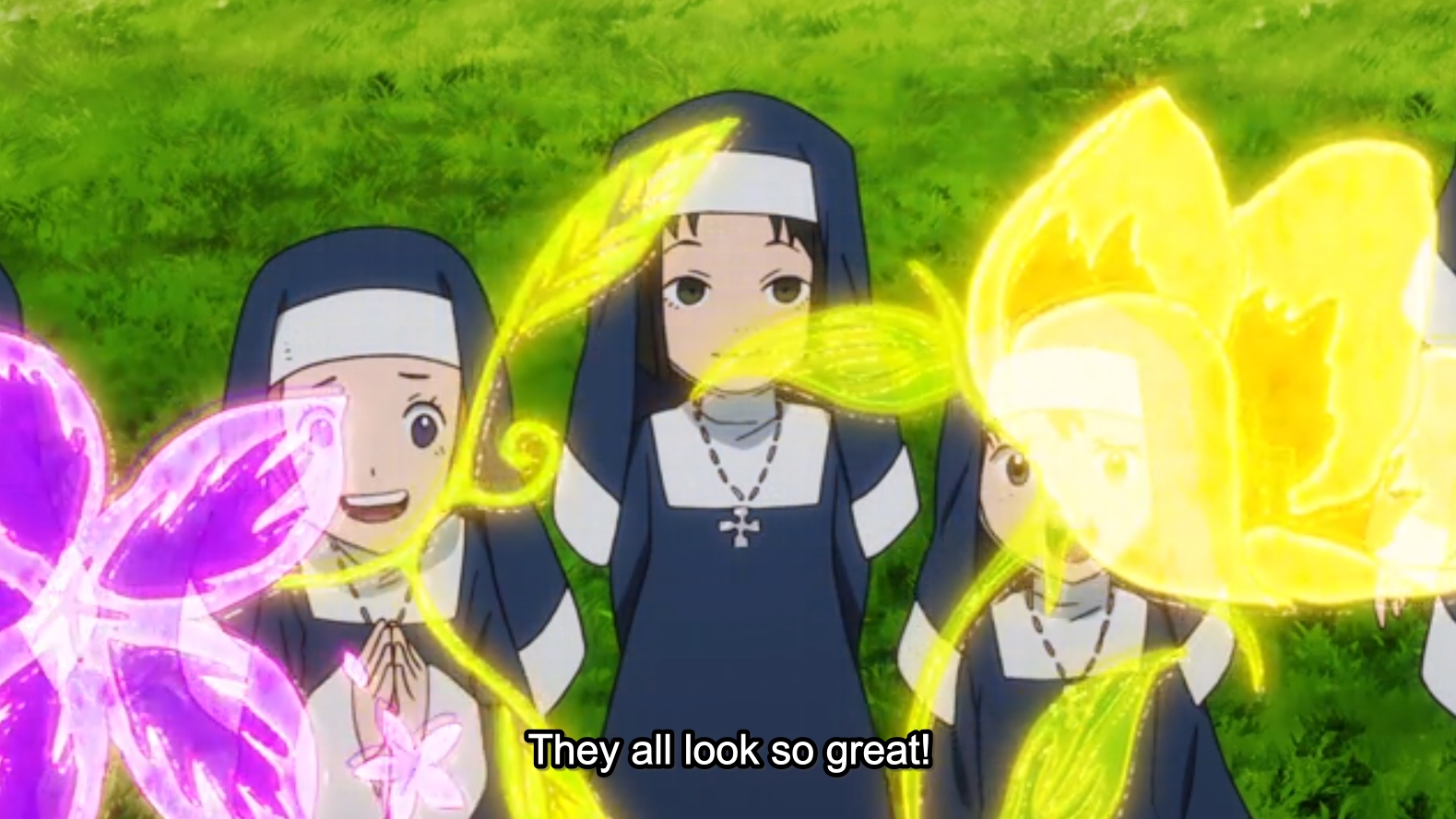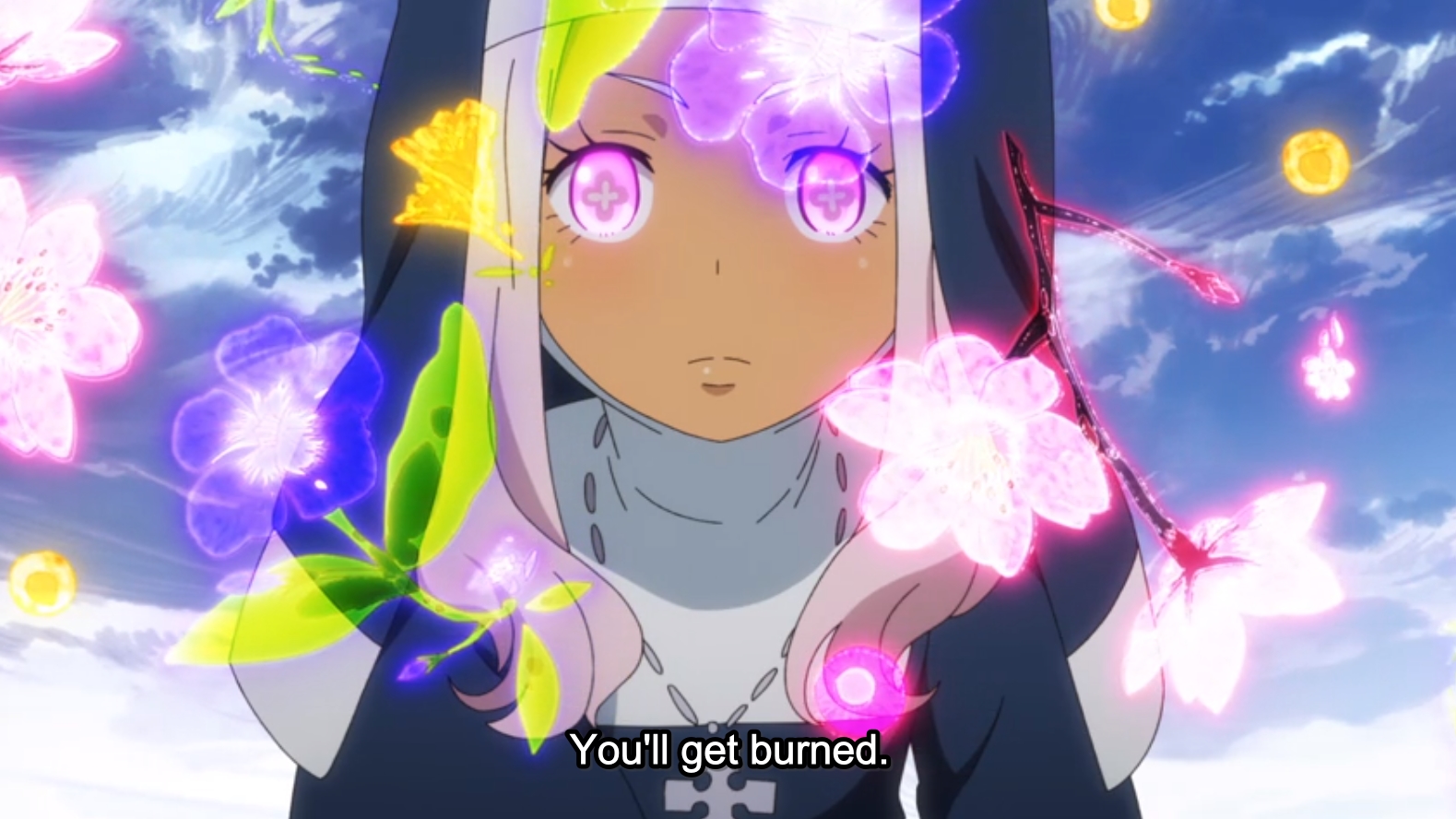 I watched the episode before a very long, and very full weekend and I was rather tired when I did, so even though I remember it well, I have to admit, looking over the images in my media library, I was actually taken aback by how genuinely pretty Fire Force is.