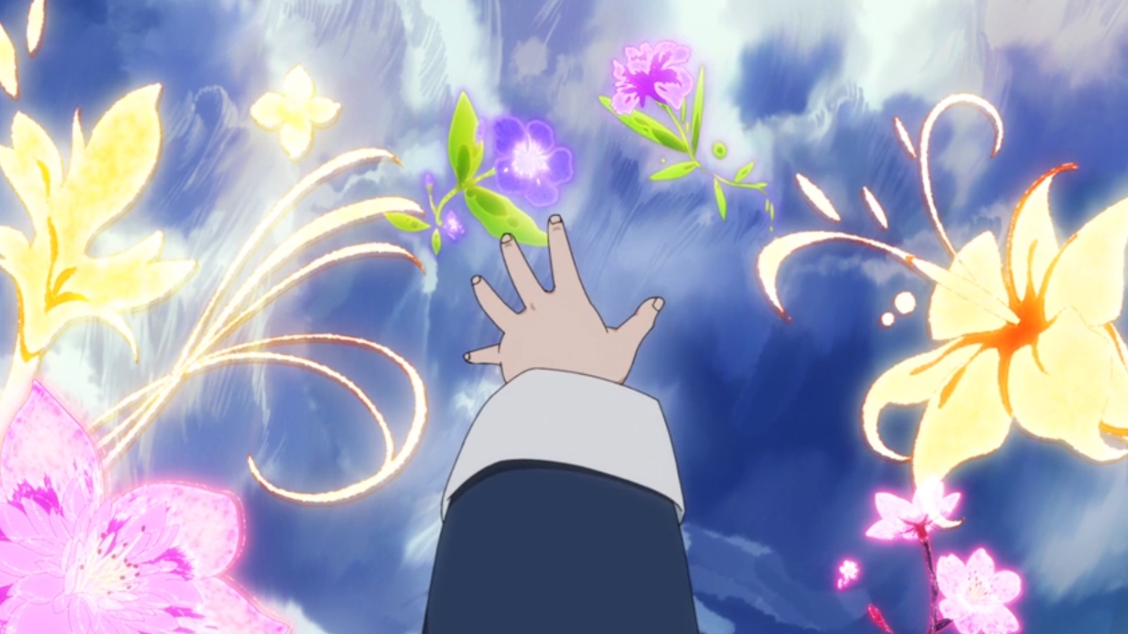 Am I the only one who adored image of Hibana’s eye lingering in a sea of flames. It’s amazing. First her eye is this beautiful blue, not it’s usual colour and she doesn’t seem to have a white anymore. Second it looks like a drop of water as even the pink flower iris is muted and blueish. To me, this image was saying that the flames have note quite taken over Hibana completely. That there’s still a drop of mercy and sanity left in her.