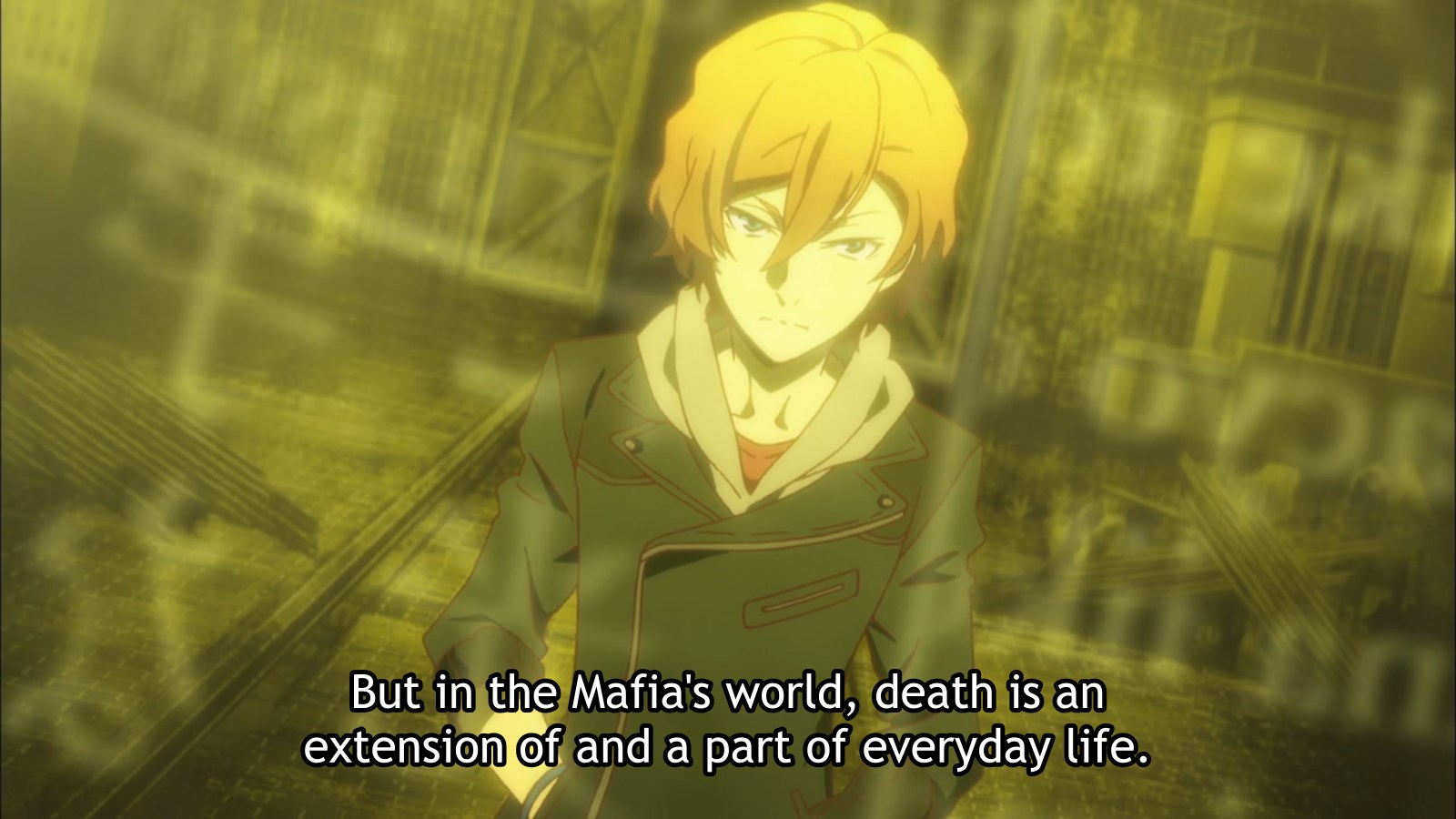 Keeping that in mind, I thought it would be unlikely for the director to throw in a bunch of random angled shots just for fun. The greater lore of Bungo Stray Dogs puts heavy emphasis on the city of Yokohama. Both the Detective Agency and the Port Mafia are created to keep the balance in the city (along with the Special Ability Department) and ultimately allow it to prosper. We’ve seen both Mori and Fukuzawa express that the welfare of Yokohoma itself was more important than their own lives or organizations. Their means differ drastically.