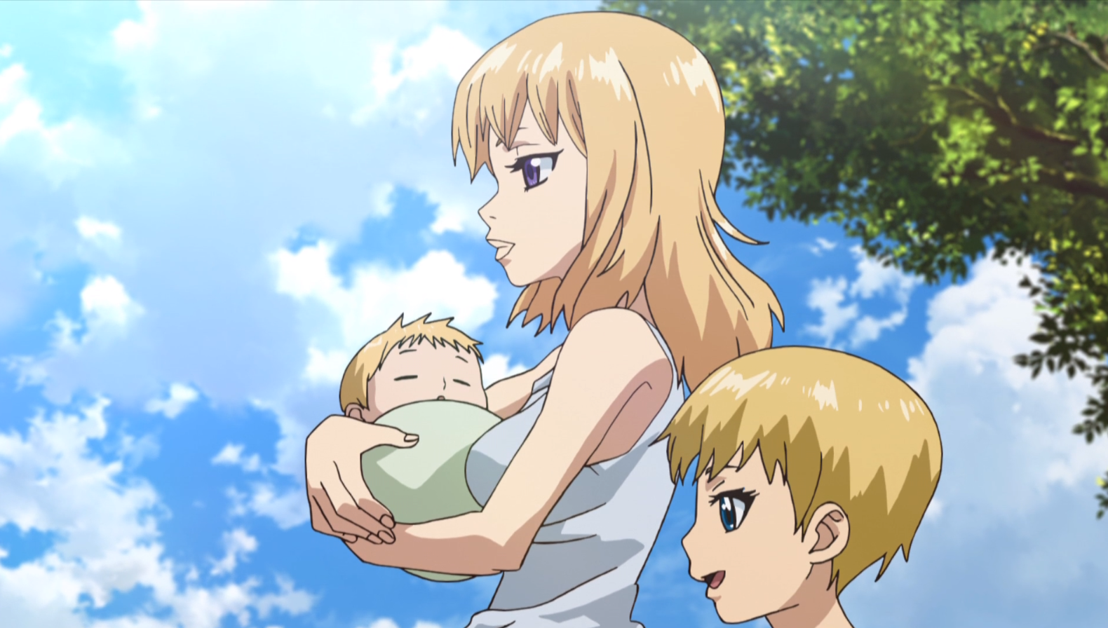 Oh, like I said, they insisted on telling us twice and in detail that Senku and Byakuya aren’t blood relations. The fact that they are so alike is fine, and sweet even. I do like that a lot. Father’s aren’t sperm donors. But why did they have to make their character models so physically similar? Senku is pretty unique looking, with his hair and eyes being the main distinctive features and Byakuya is visibly similar in both of those. The could have made them a bit more different in design without it being too obvious.