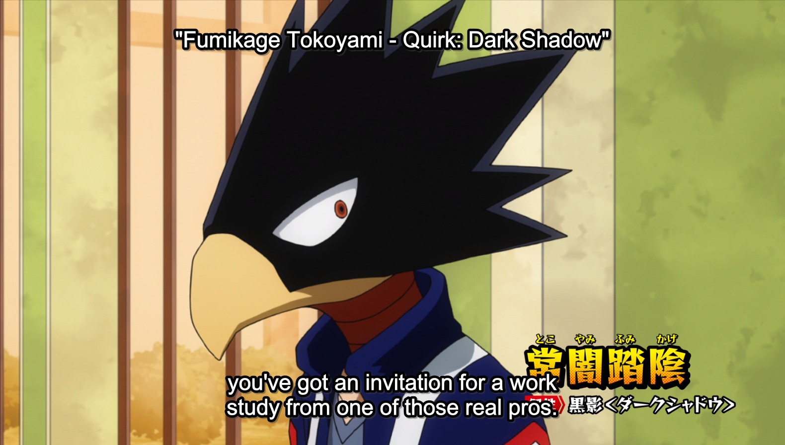 After Deku’s personal trial is over, we go back to the school to find out that he’s really the only student to have had any luck so far. Unlike the previous internship, the work studies program puts students directly in the line of danger, and as such, most professional heroes are not willing to take the risk and do not have the insurance for it.
