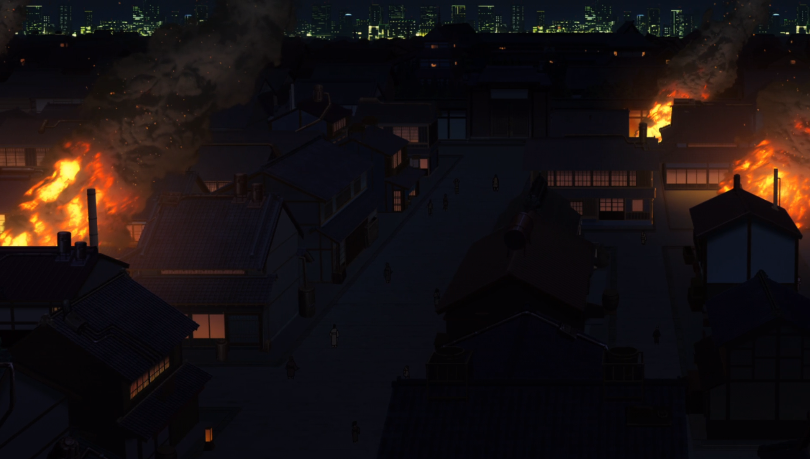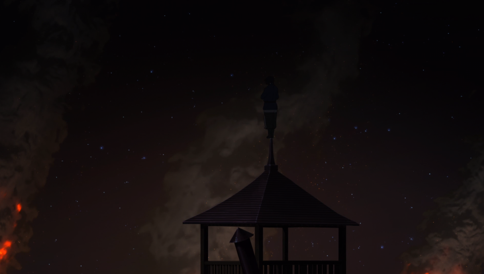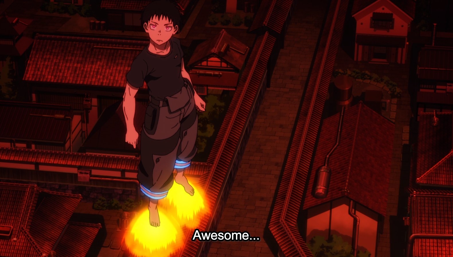 The very first thing I did when putting this post together is set my gif as a feature image and admire it a bit. I made it yesterday and I just wanted to make sure it was ok. And man, Fire Force is just great looking. That colour palette the forced perspective, the fake fisheye upshot that gives a curve to the skyline of the buildings. Basically this composition rocks. It just does.