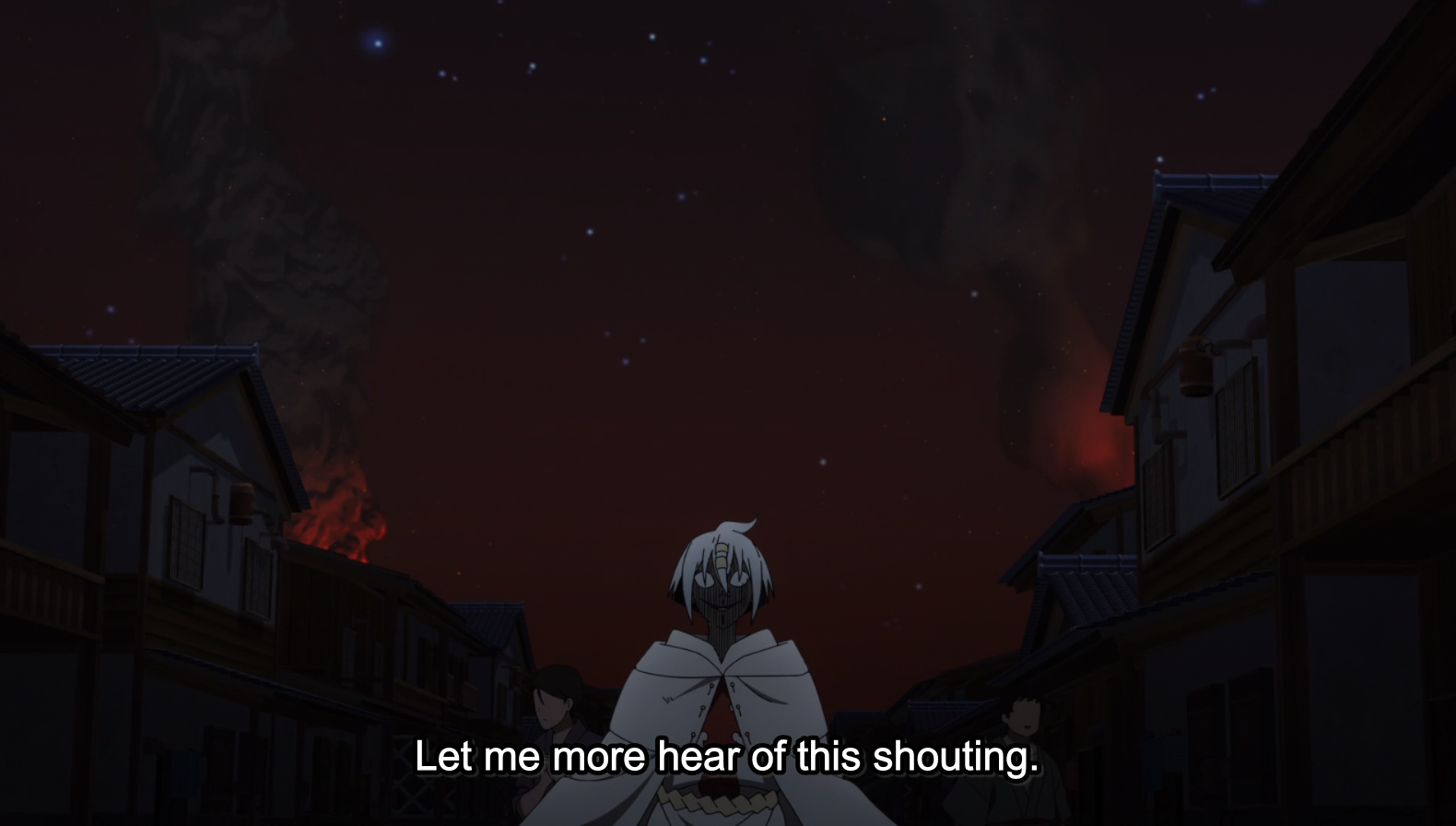 I like how visually isolated Benimaru is. Every scene is either brimming with people or showing Beni all alone. It really sets the character apart and imbues him with a sense of awe and importance. He’d so grand, no one can even share the screen with him!