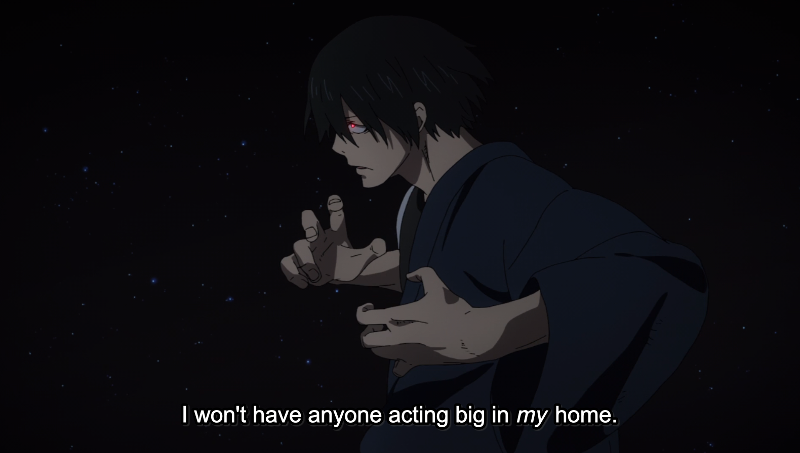 I hope we get to see some glowing green soon. You know what I mean. Certain characters have glowing red eyes while others have blue. The same blue as the Fire Force uniforms. By keeping to accent glowingt colours very restrained they make them really pop. But I think there’s place to add in green and it would really stand out as it clashes with most of the palette of the show.