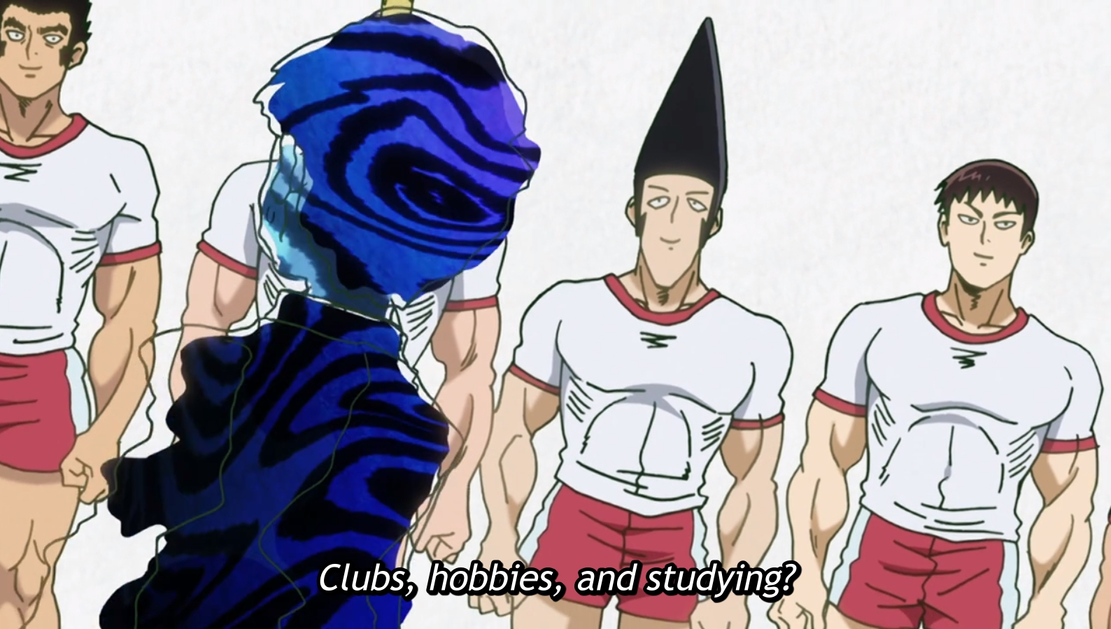 One of the definitive upsides to having more “naive” art and fluid character models is that animation becomes less restricted. There are some crazy physics going on in this show and it’s really fun to watch. One thing I noticed is that while everyone else zooms around the screen, Mob is largely immobile during combat. For a second I thought this might be an animation shortcut but I quickly realized that this goes hand in hand with the running joke (pun intended) of Mob having no physical stamina. Nice little animation character building!