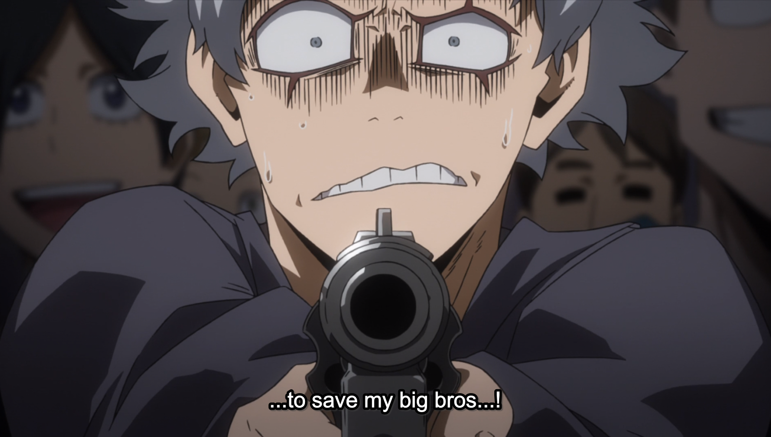 Everything should have ended there. Bright headlines the next day and Kirishima feeling a little bummed he didn’t get to do anything. That was all it should have been really. It was dumb stupid lack of luck that made it so that one of Overhaul’s minions, some guy so far down the line that Overhaul’s probably never even herad of him, happened to be in the crowd of onlookers. Just some guy frustrated by his lack of power, bitter at the display of skill right in front of him, and possessing the one thing that could destroy that power, at least for now. A gun capable of shooting drug capsules. And one manages to hit Tamaki straight on. Of course there are two more Heroes there and Kirishima immediately jumps in to avoid Tamaki getting hit again. Kirishima’s hardening skills makes him ideal as a human shield and the second capsule bounces off him without having the chance to inject anything. This is when I started realizing Tamaki was smarter than me. Kirishima really is a hero, wouldn’t you say?
