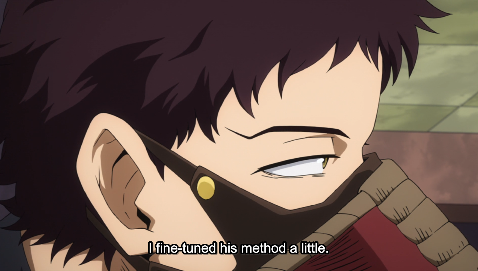 I think his earlier encounter with Overhaul affected him quite a lot. I got the sense he actually felt responsible for the survivors like Himiko and Mr. Compress. Instead of hurling himself in a despairing fury, he’s regrouped and has begun to exert some self control. As you said, that’s a very bad thing!
