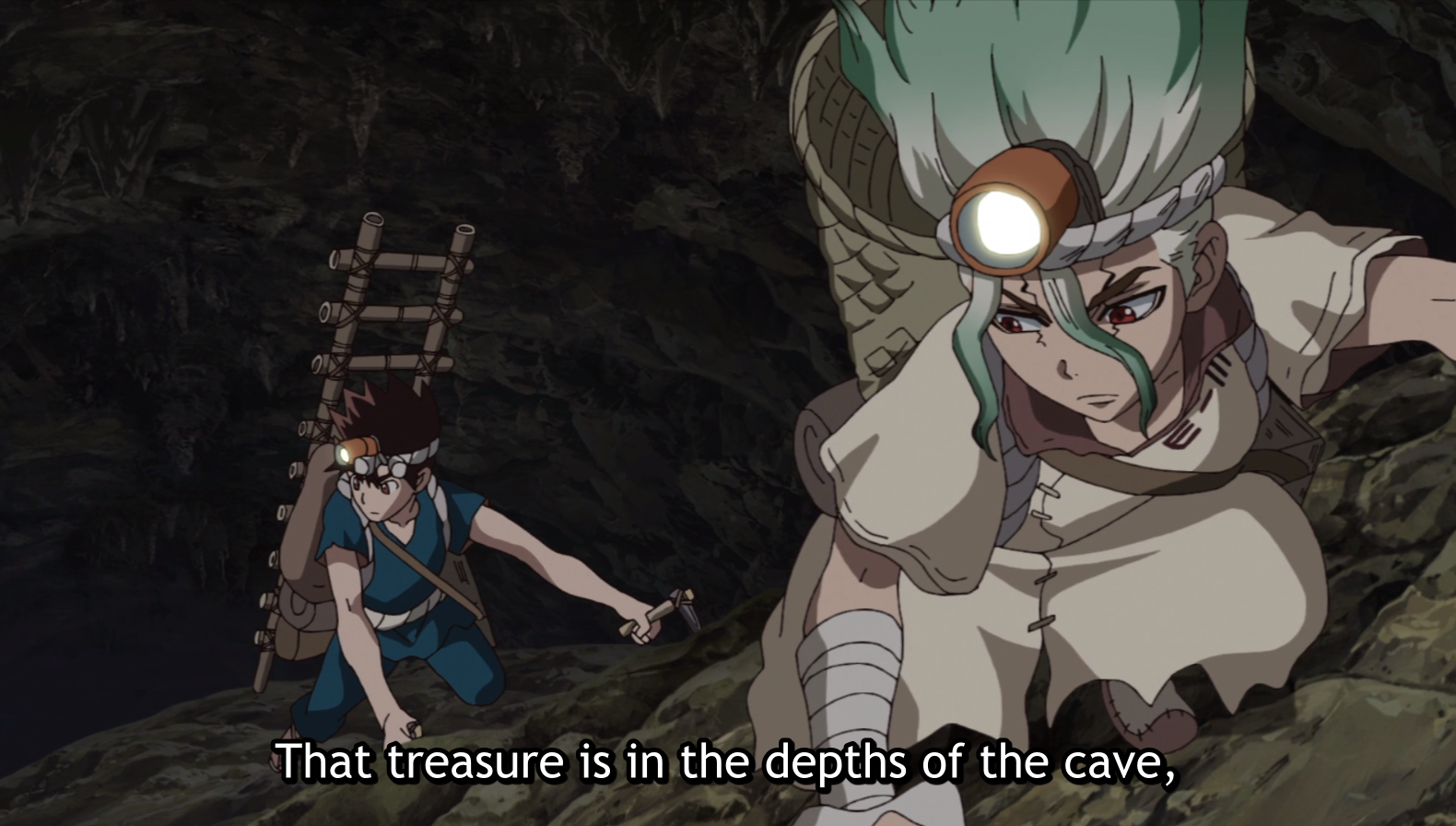 The main part was really just the three boy’s expedition to get tungsten. It was a fairly straightforward trip but Magma and Senku did manage to get themselves trapped in a pit for a little while.