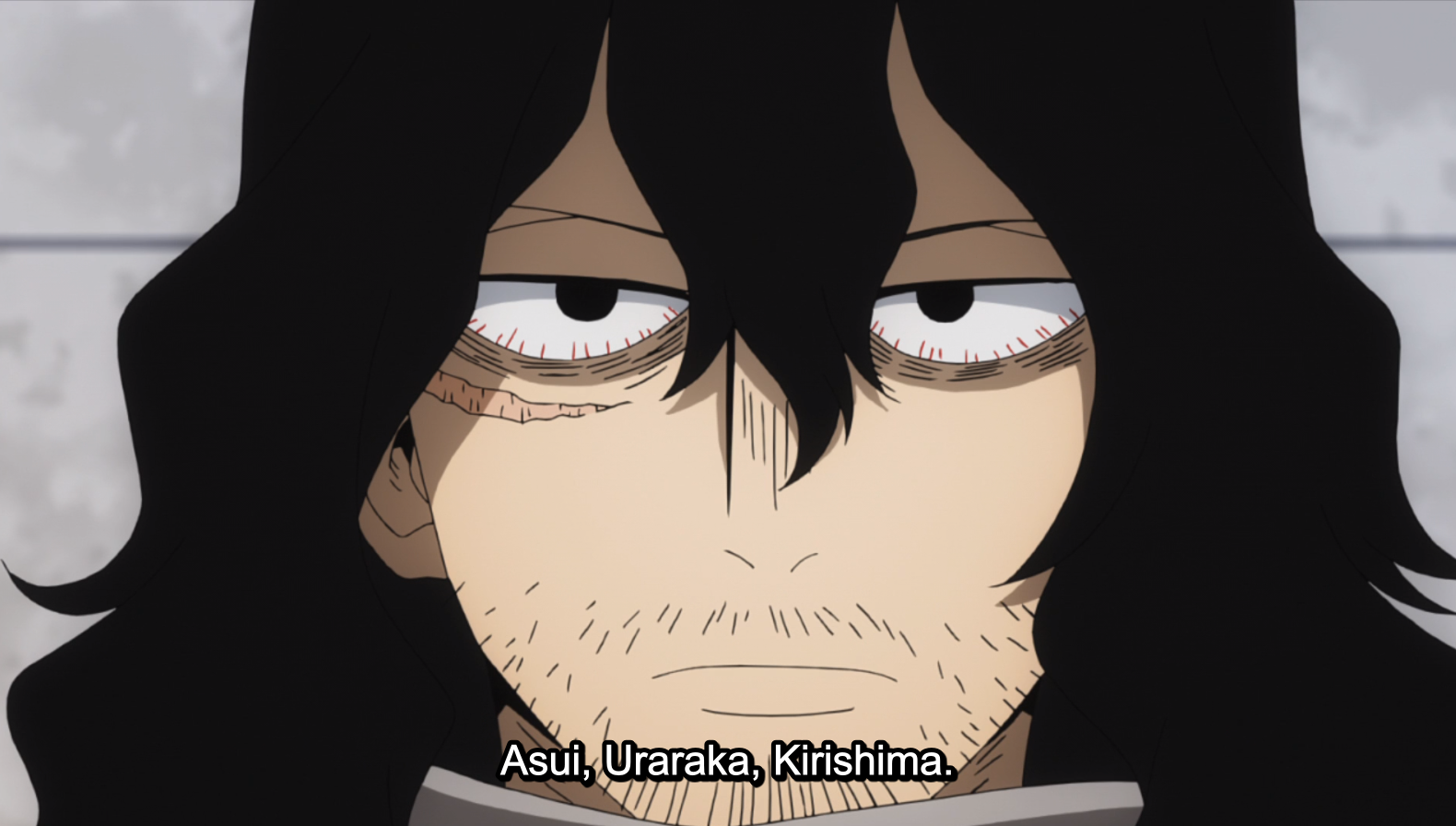 Aizawa’s hair was on point this episode. No wonder he looks so tired. Dude is spending every waking moment tending to it.