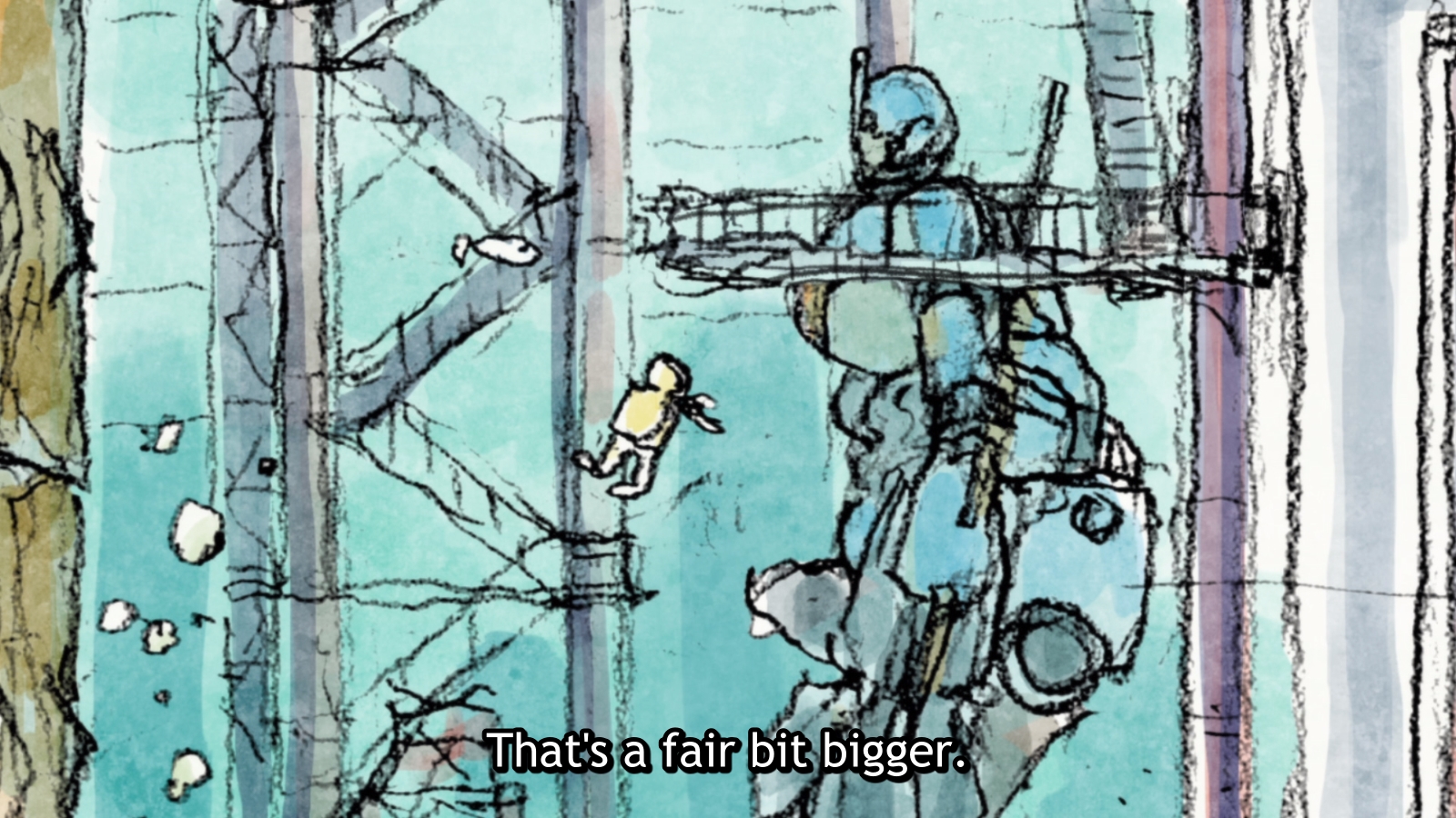 It took me a while to notice but the camera moves around a lot in Eizouken. There’s really a wide variety of angles and camera distances in just about every sequence. It makes it look like there’s a lot more movement going on than there really is.