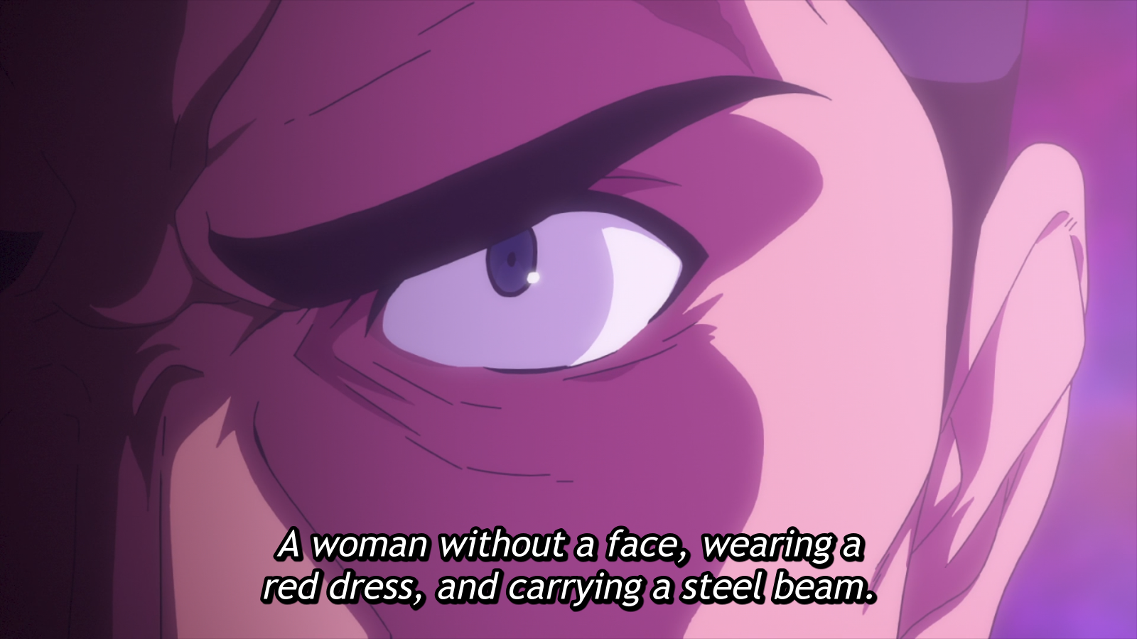 InSpectre usually color codes the scenes green for Yokai but this time it went purple like it does for Steel Lady. It’s not as aggressively pink as it is when she’s actually onscreen but it’s still closer to her colour than the other Yokai colour. I guess her spirit is having some sort of influence over the place.