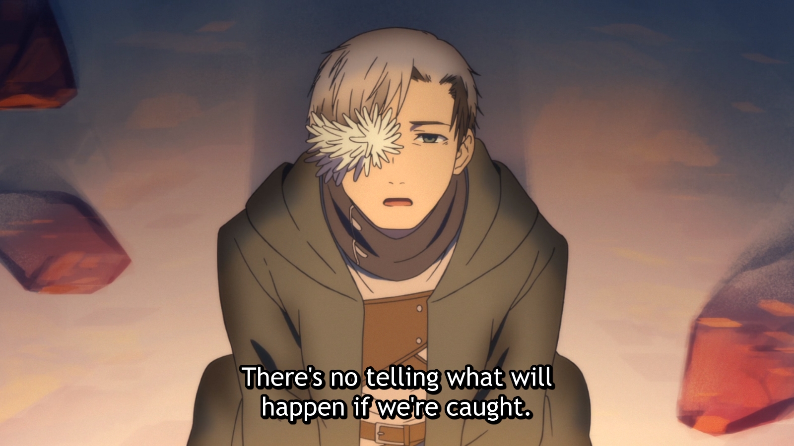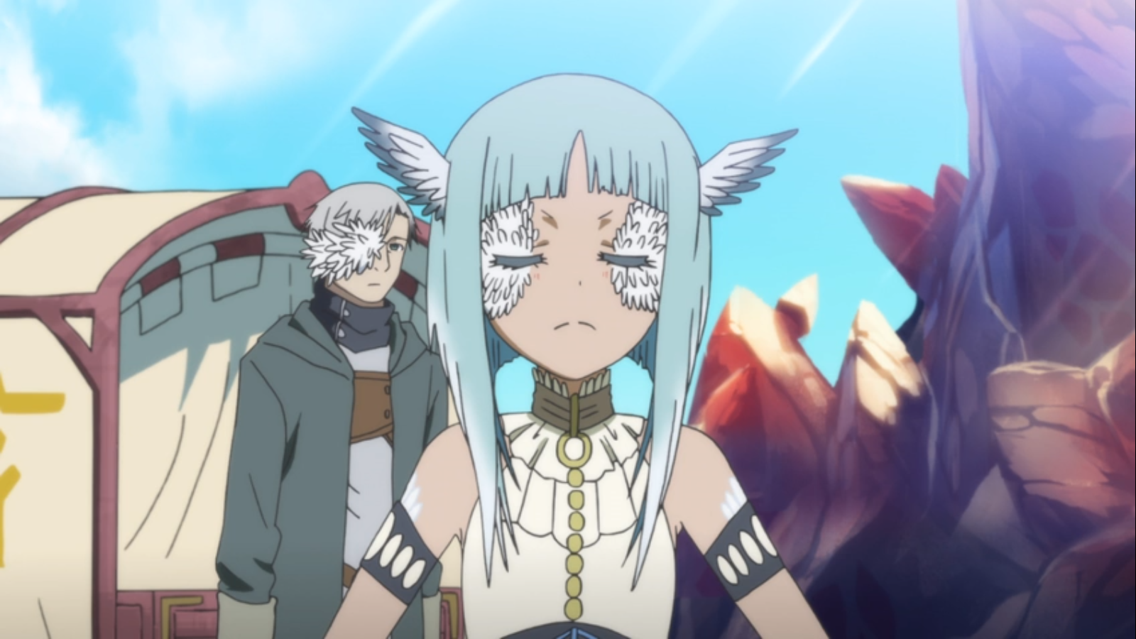 Unfortunately, I did not manage to capture and screenshots of Golem’s Swiss army wings but they were impressive and terribly sad. The scene itself reminded me on the early Ancient Magus’ bride OVAs that had so enchanted me. There was a droplet of steam punk aesthetic in the way those things moved and were put together. The imagery was in fact blunt but when compared to the last few weeks, it seemed much more restrained.