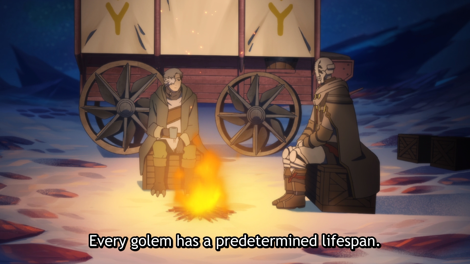 Yet I was just sort of bored and I started to worry that maybe I was over it. The desert setting didn’t help either as I found it much less visually interesting and monotone. Right after Golem and Somali part ways with Uzoi and Haitora, there’s a series of still images showing their travels and I was about to write that those were my favourite part of the episode. Those stills really were quite sweet and I wouldn’t mind having them framed on a wall.