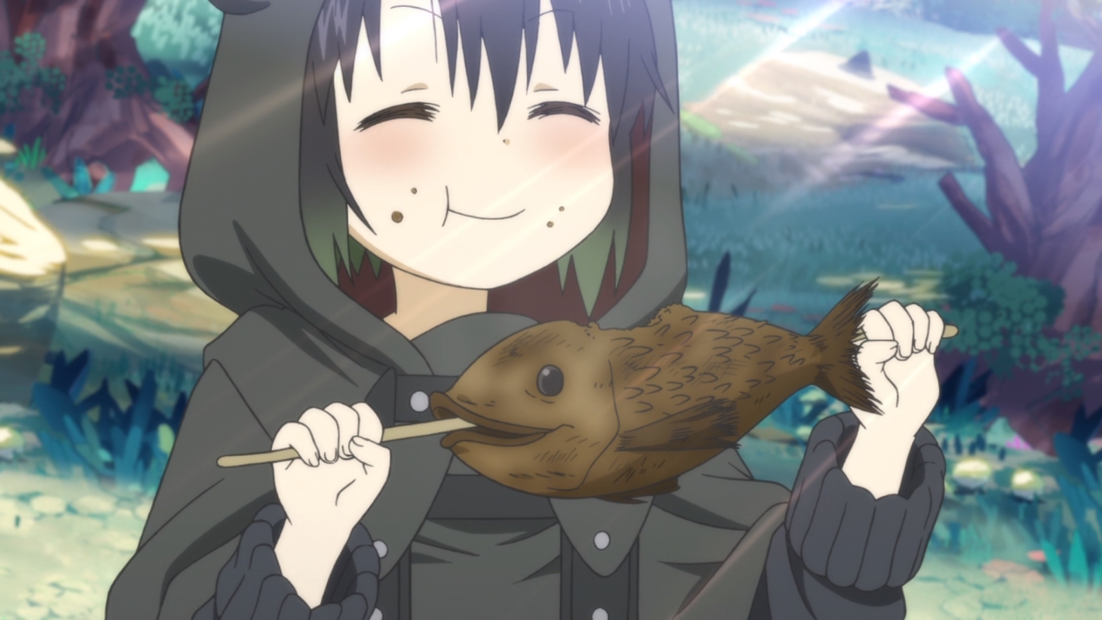 But the Somali and Golem arrive at the witches’ village and you know what witches mean: Magic! In mere seconds, it was all back. The spellbinding visuals that made my eyes want to seek out and savour every little inch of the screen. The light and cheerful atmosphere softly cradling foreshadowed bitterness. Lovely characters that interact calmly and naturally and make you want to talk to them as well.