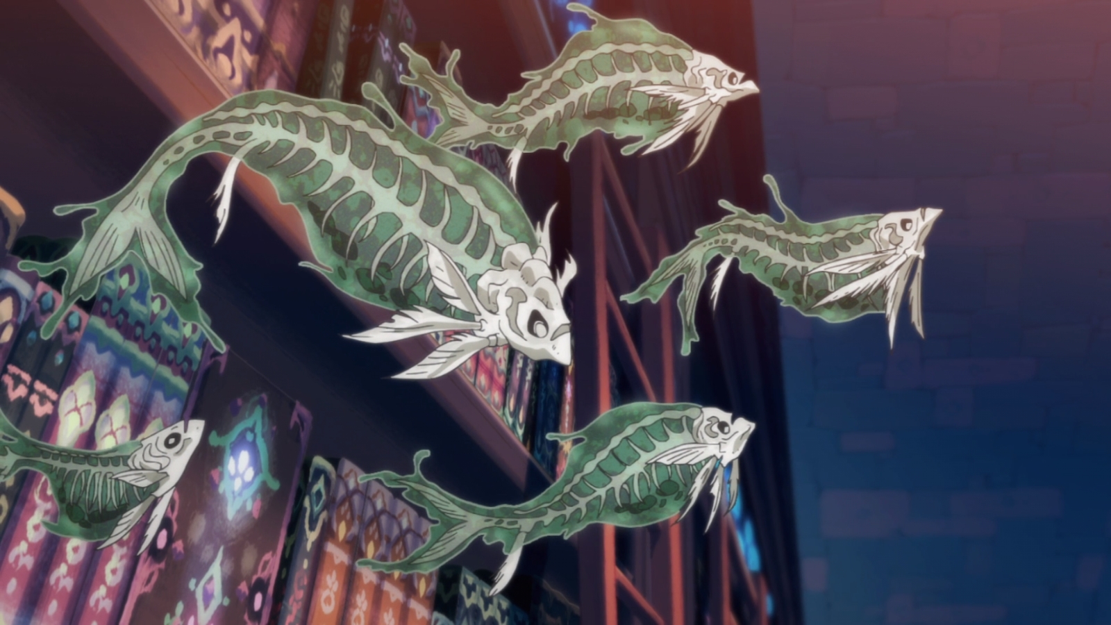 Second: what’s with all the fish out of water. We get sand sharks, and now we get library skull fish (as a variant of magical bookworms I suppose). What’s next? Arboreal jellyfish? I think, I’d like those.
