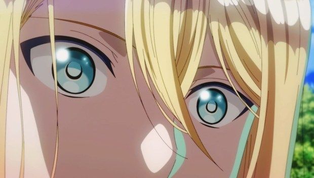 Then there’s this eye-design, where they do away with the pupils, just hinting at them with outlines. The first time I noticed that was with Mikakunin de Shinkoukei, which relies a lot on strong outlines in general for their character designs.