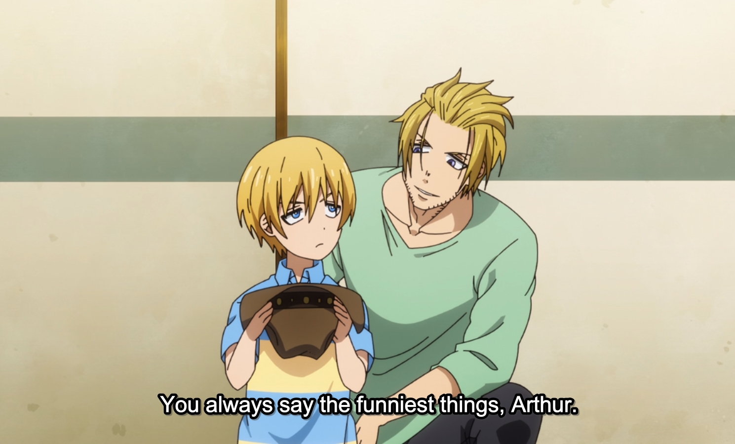 Similarly, Hague likens his own experience with his Adolla link to a spiritual or religious experience that gave him a taste of Truth (capital T). But it’s obviously worn out his sanity. As for my man Arthur well… He was never all there to begin with, and this episode gives us an origin story for his delusion, which although sweet in and of itself, may have weakened the character a bit. Still it’s telling that he is exponentially stronger, better and happier when he is in his own world. Now that’s an unusual lesson…