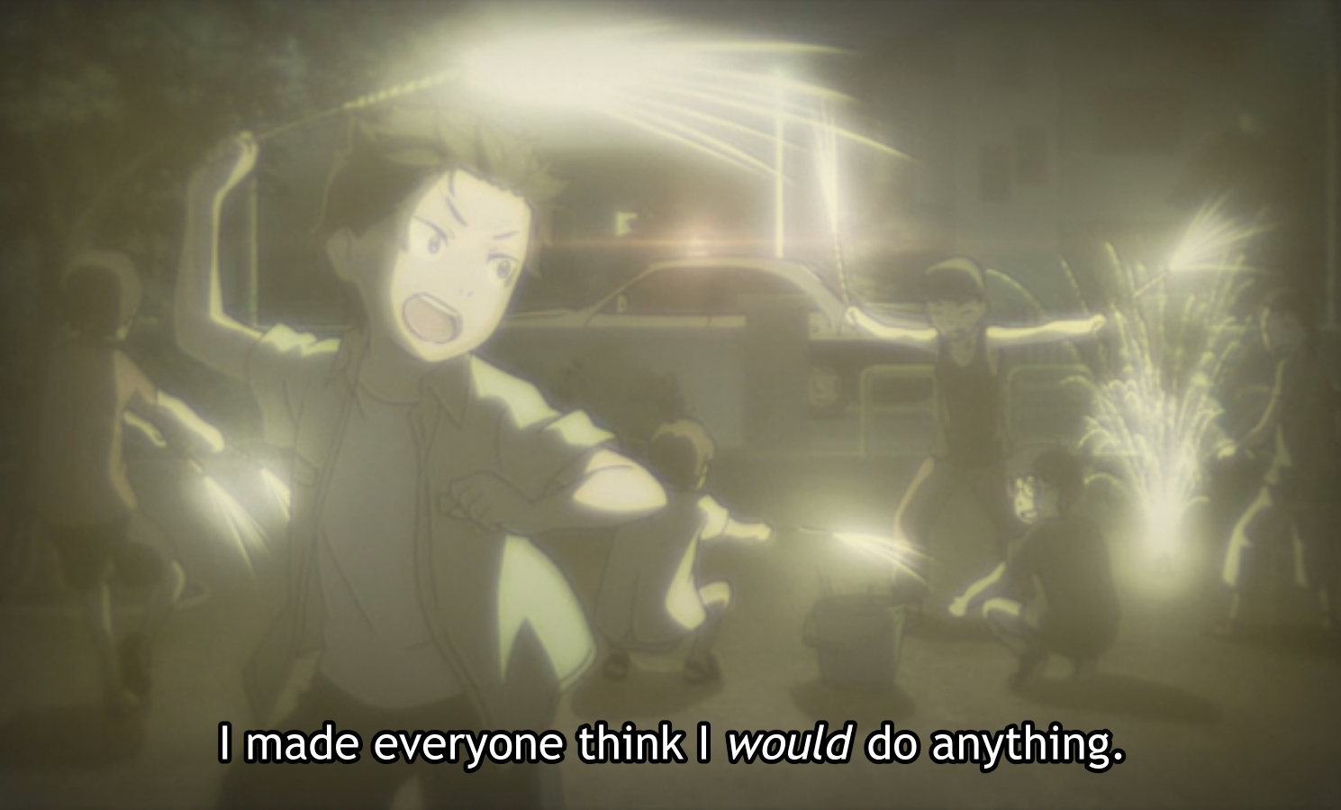This episode was entirely Subaru’s test and the visuals went all out to really let us know that something was off. First the colours were desaturated and the image was grainy. Like in an old photograph. hat way we know those things aren’t really happening or at least they’re not happening right now.