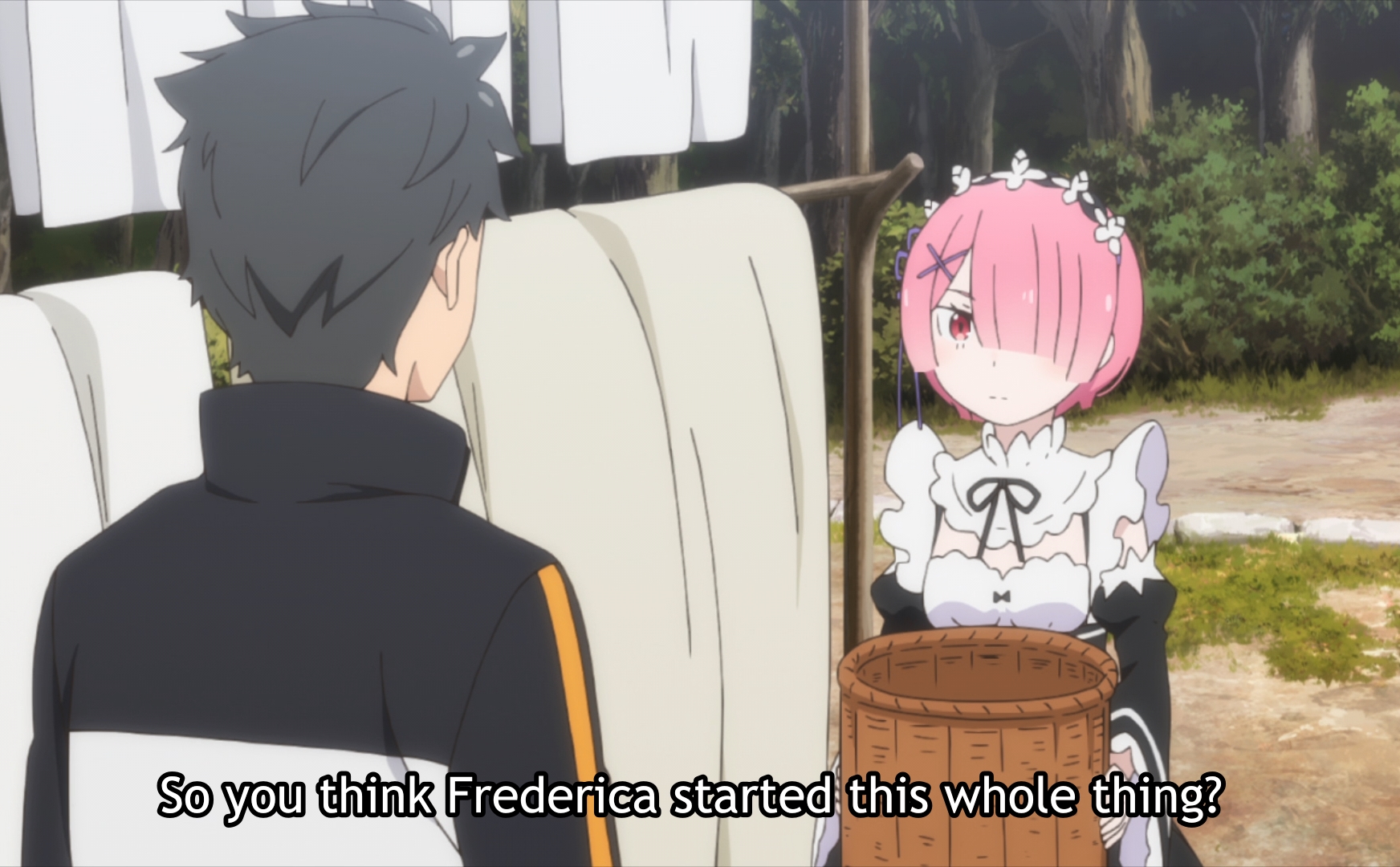 In episode 2 of Season 2, after Subaru and Emilia left the mansion, Frederica took out the letter from Roswaal and said, “I have done exactly as Master directed.” Given the context of the scene, I would be surprised if it meant anything other than her doing everything Roswaal had told her to do. Why Roswaal would need to hide this from Ram is very strange, and I really wonder what in the world he is thinking.