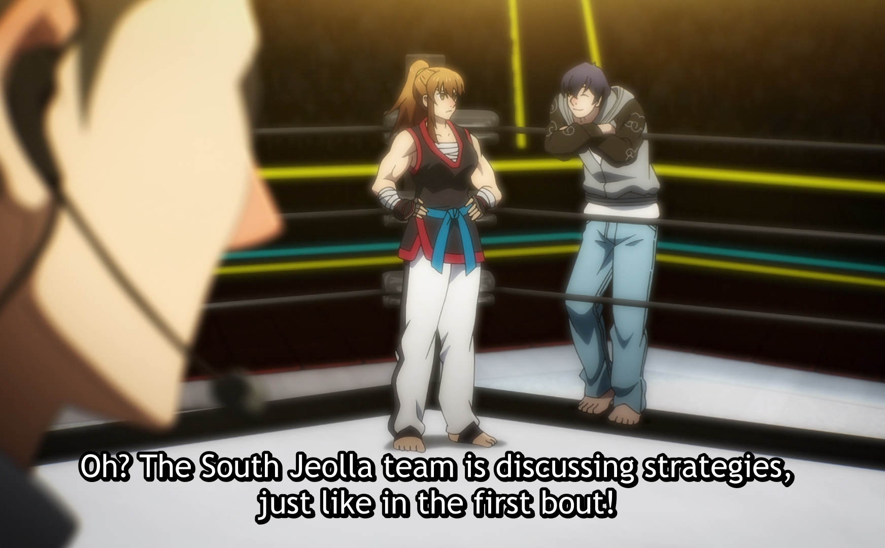 This said, I still don’t care all that much about the tournament itself. I know that last week I mentioned that in theory the Nox storyline is the one that interests me but in practice, I just don’t care that much. And I don’t. Personally, I actually am most interested in the judges and organizers. I would have fun watching a Slice of Life about Q screwing himself out of a salary every week while Park slowly turns into Michael from the Office. Maybe that’s just me.