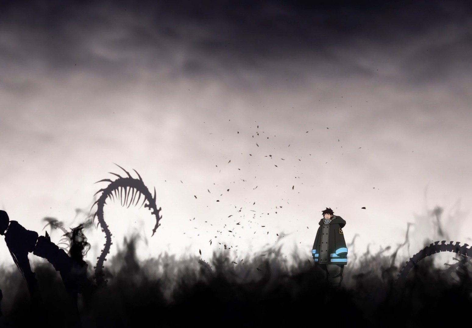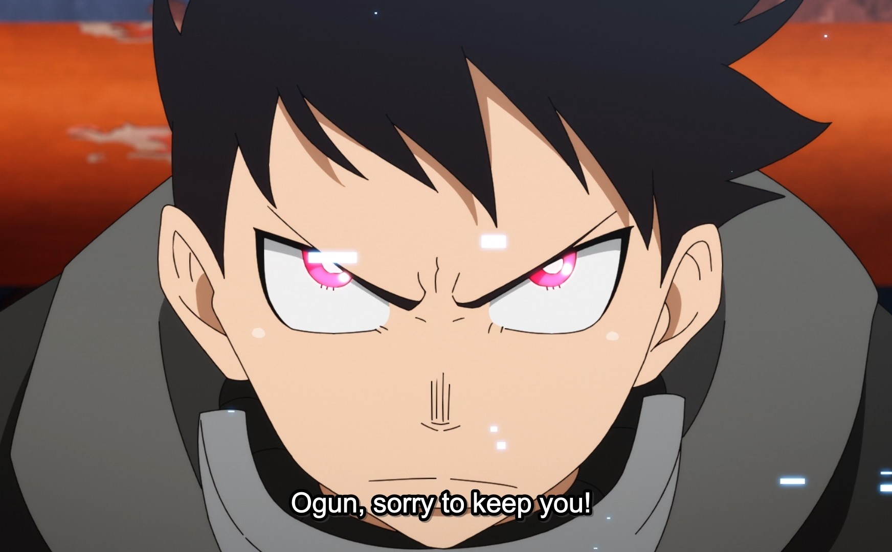 Second, I know the images or anything, but this episode has some really great sound design. I don’t usually notice it much in Fire Force but I liked it this week. It made noises vary in register instead of making them louder in order to make more impact which I appreciate and there was a great use of silence. Silence is an underappreciated part of sound design.